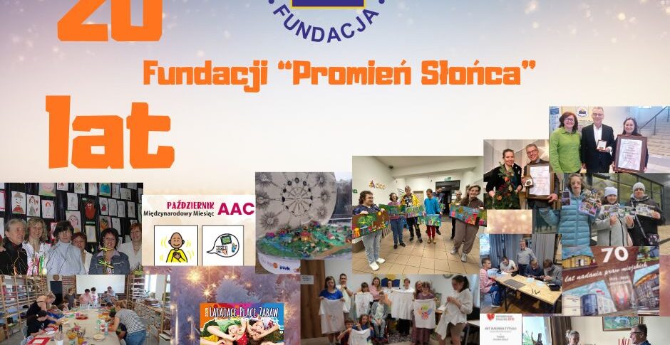 20 lat działalności Fundacji „Promień Słońca” to historia codziennej pracy na rzecz osób z niepełnosprawnościami, ich rodzin oraz lokalnej społeczności. Od 2005 roku poprzez sztukę, terapię i działania integracyjne Fundacja wspiera rozwój, buduje relacje i realnie zmienia życie ludzi.